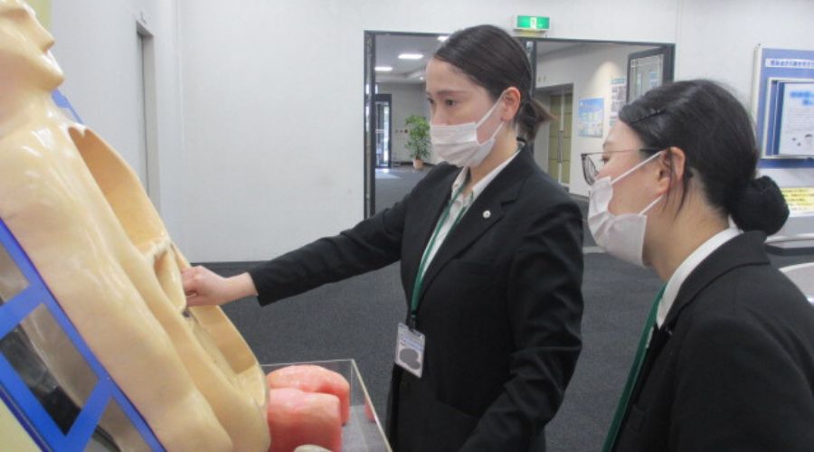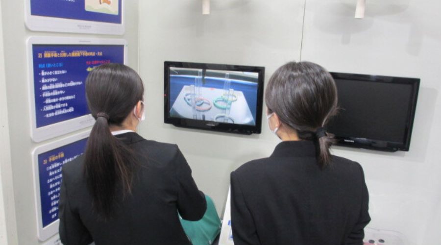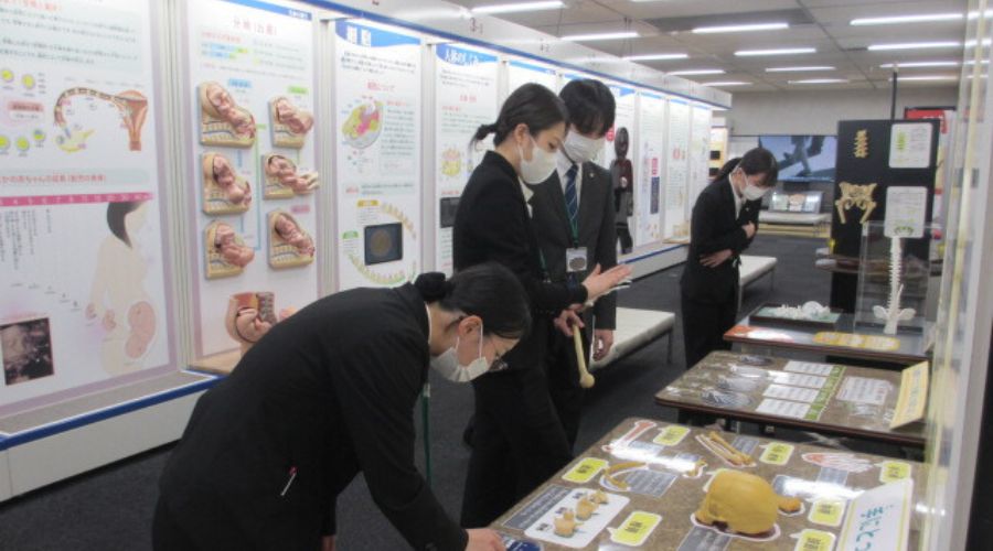 学生は、入館後すぐに展示物へ関心を向け、手に取ることができるものは手にして眺めたり、触れる展示には積極的に触れたりするなど、行動の立ち上がりが非常に早いことが印象的でした。また、体験型の展示にも意欲的に取り組み、それぞれが主体的に学びを深めている様子が伺えました✨館内には、授業ですでに学習している解剖生理学と関連の深い展示も多くあり、学びとの結びつきを実感できたかどうかは個人差があるものの、学生たちは数人のグループに分かれたり合流したりしながら、仲間とともに一つひとつの展示を楽しみつつ見学・体験していました📚