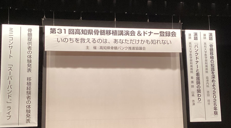 講演会途中のスーパーバンドのミニライブでは、高知県民なら聞いたことのあるCMソングも飛び出し、観客席からはつい立ち上がって手拍子をする人がいるなど、会場が盛り上がる場面もありました。講演後は実際にドナー登録をした学生もいるなど、看護師になる思いを改めて固くした1日となりました。