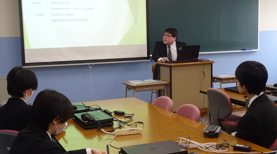2月26日の社会戦略講座は、本校の高度システム開発科を2017年に卒業した大﨑 亮一 氏(株式会社ASほくでん勤務)を講師に迎え、「IT業界のリアルな仕事」についてご講演いただきました。
