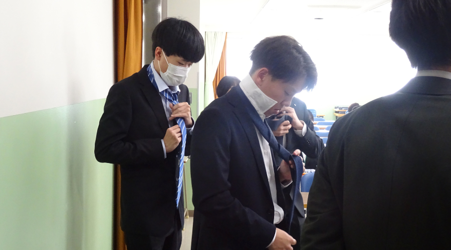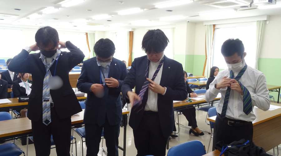 初めて本格的にスーツを着用する学生も多く、身だしなみの大切さを改めて学ぶ貴重な機会となりました。