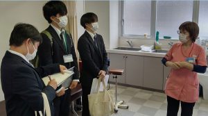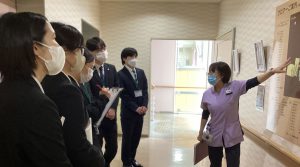 学生は高齢化が進んでいる地域において、災害医療や救急医療、慢性期医療、療養や看とりの場所の確保など、それぞれが担っているものについてのいくらかは理解できたと思われます。また、案内に必死について行きながら、真剣に話を聞いていました。