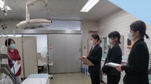 大西病院では、地域の特色、病院全体の説明、院内の見学、岡山の民間救急事業との連携の説明、民間救急車内の見学をしました。くぼかわ病院では、地域の特色や地域住民の高齢化の動向、病院全体の説明と各部署の看護の特色などの説明を受け、院内見学へと進みました。