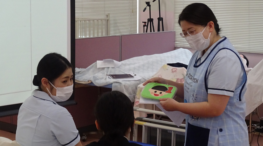 この授業では将来、小児看護の現場で欠かせない“考える力”と“伝える力”を、実践的に身につけていきます。